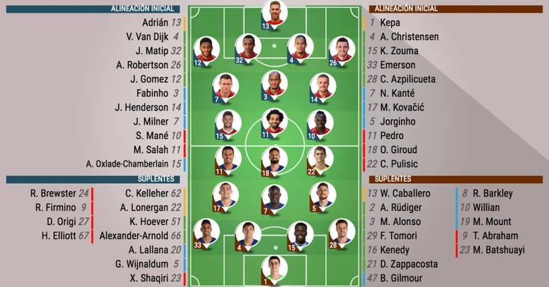 Dentro de las primeras novedades que nos traía la final es la árbitra Stepahanie Frappart, quien se encargó de pitar la final de fútbol femenil y se encargaría del compromiso; además de la sensible baja de Alisson y las molestias de Firmino, quien no podría partir de inicio por parte de los reds. Y por otro lado, el Chelsea venia de perder dolorosamente frente al Manchester United 4-0 en Premier, asimismo de perder para esta temporada a su máximo referente en el ataque como lo fue Eden Hazard, pero aun así, confiaban en que de la mano del joven Christian Pulisic y de su DT Frank Lampard los llevara a alzar el título.
